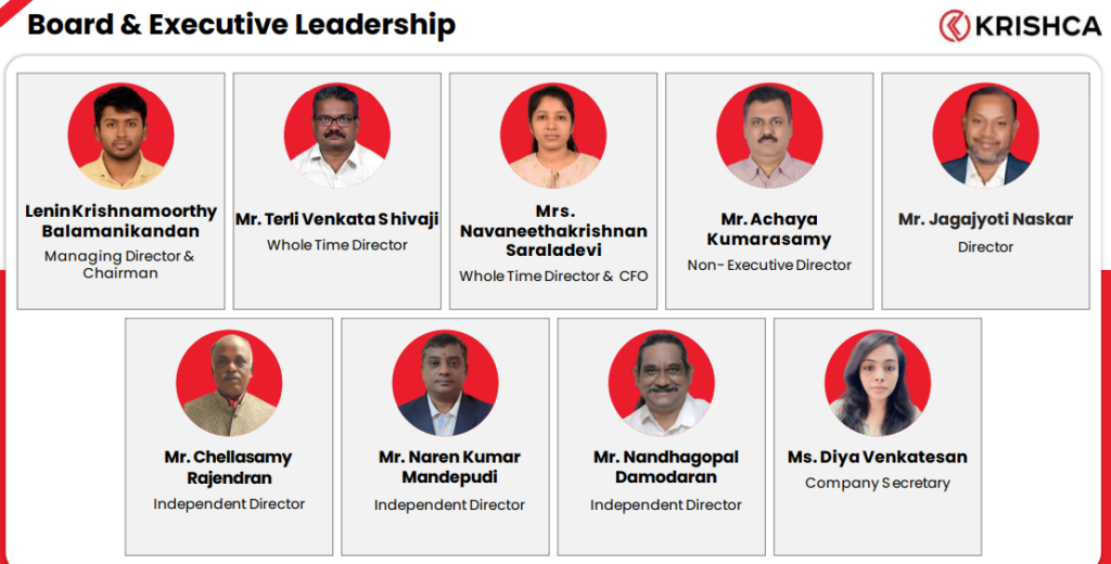 Lenin Krishnamoorthy Balamanikandan (Managing Director & Chairman) as the founder and promoter, he drives the overall vision and strategy, He remains the primary executive leader, often leading earnings calls and strategic announcements.