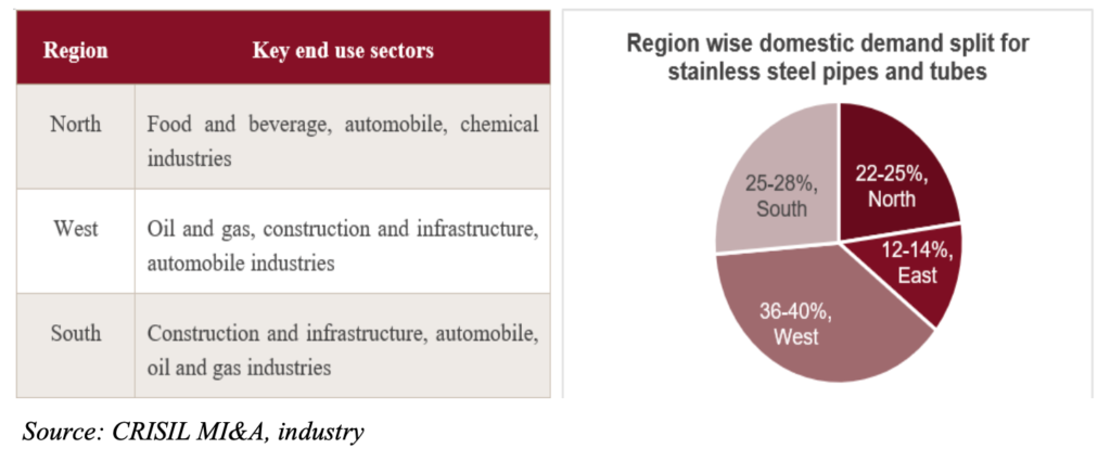 Stainless steel pipes and tubes – domestic demand split by regions