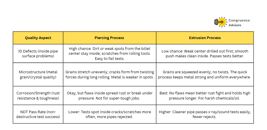 What is the difference in the quality of the end product made via piercing tech vs extrusion tech?
