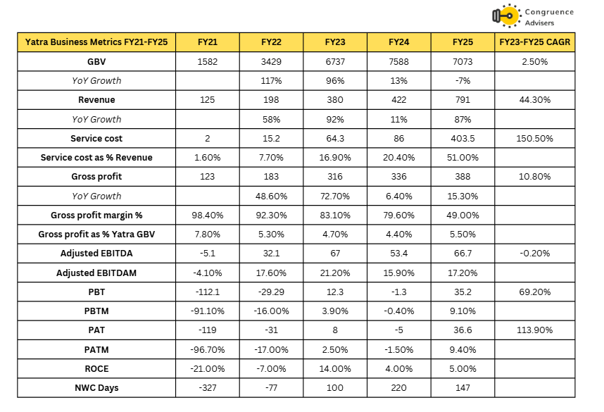 Putting all the segments together, the consolidated picture for Yatra over FY21-FY25 is presented in the table below.