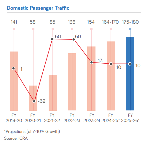 Domestic airline traffic has rebounded impressively post Covid and in FY25 was expected to reach ~164-170mn passengers, comfortably surpassing the pre Covid peak.